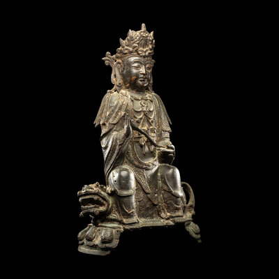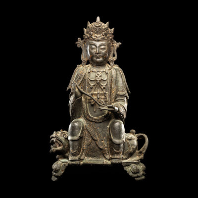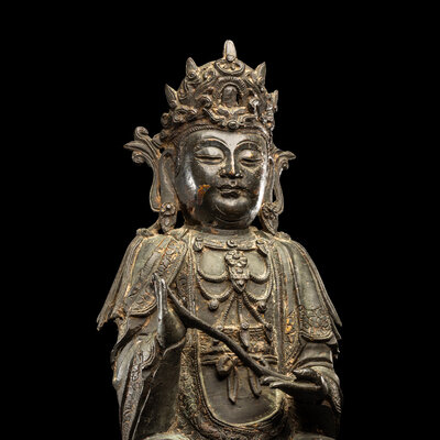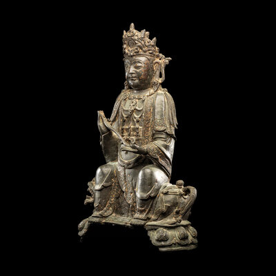A Chinese Parcel-Gilt Bronze Figure of Guanyin, Ming Dynasty