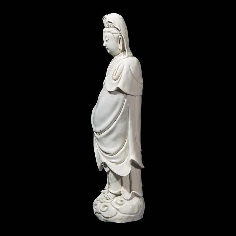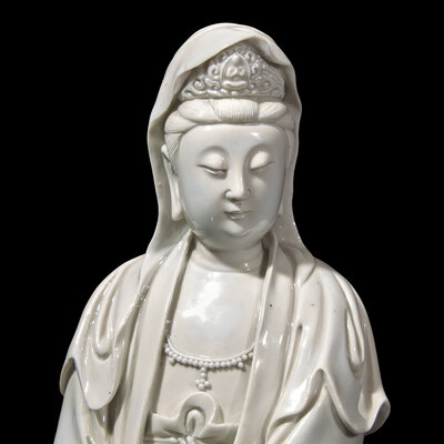 An Impressive Chinese Blanc de Chine Guanyin, Impressed Sunjiang Shanren Mark, 17th/18th Century