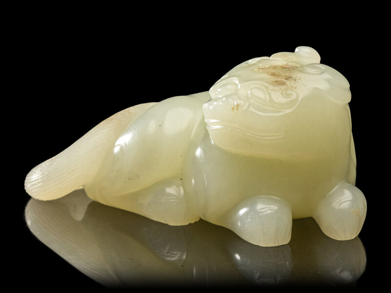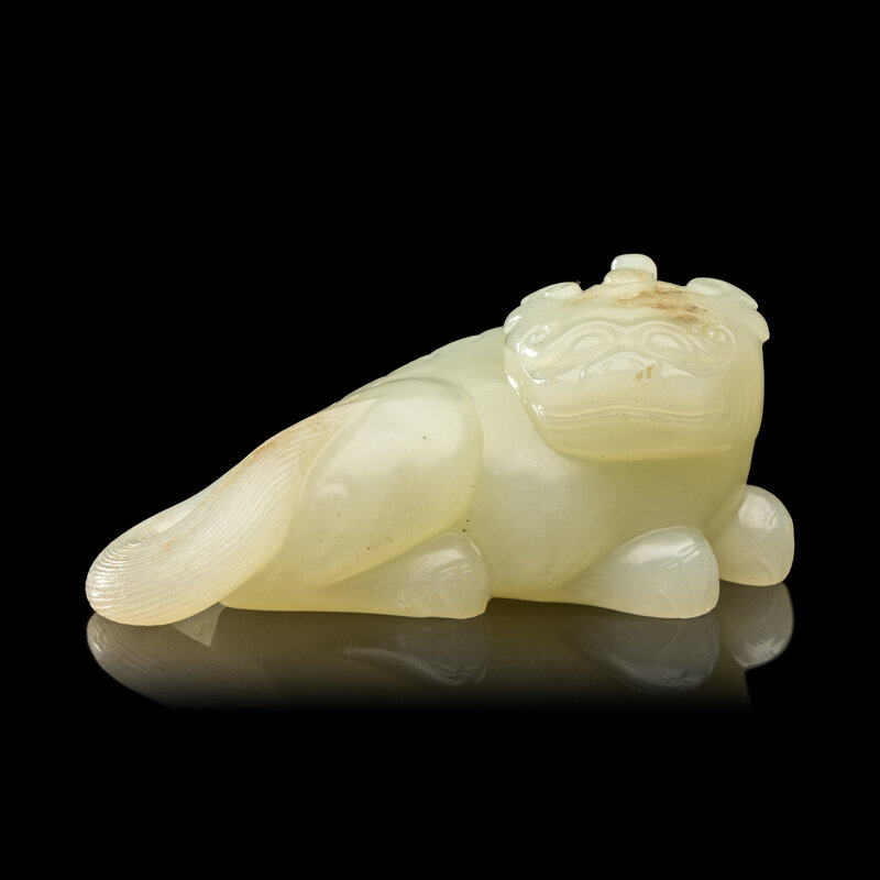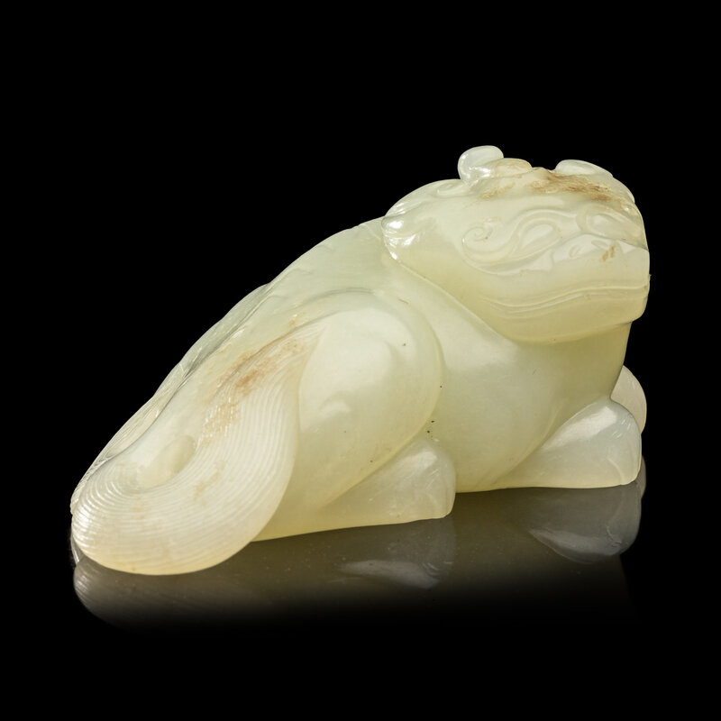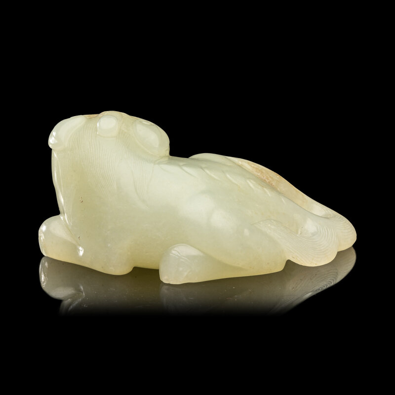 A Chinese Pale Celadon Jade Figure of a Mythical Beast, Early Qing Dynasty