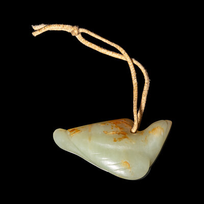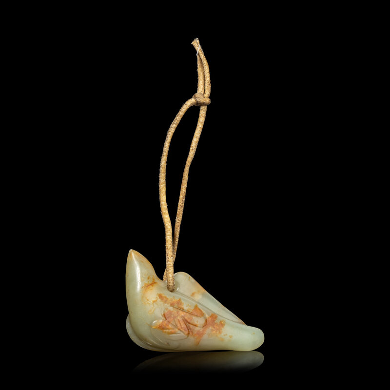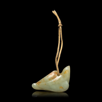 A Chinese Russet and Celadon Jade Carving of a Bird, Possibly Ming Dynasty