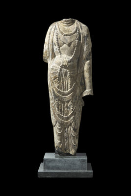 A Chinese Carved Stone Torso Relief of a Bodhisattva, Possibly Tang Dynasty