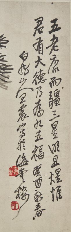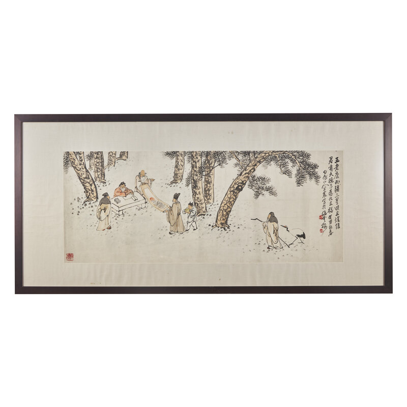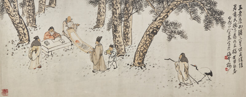 款識:五老康而疆,三星明且煜。惟君有大德,乃為九五福。癸酉(1933)新春白龍山人王震寫於海雲樓。