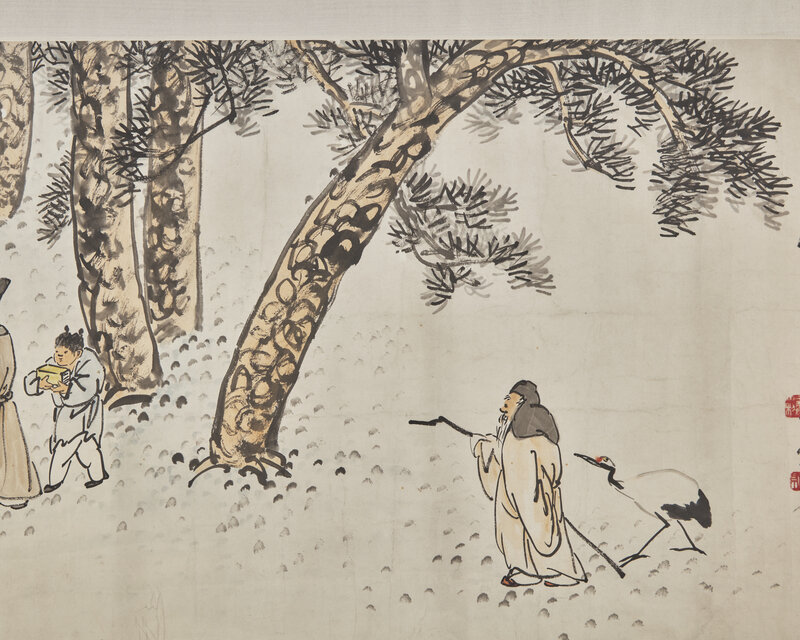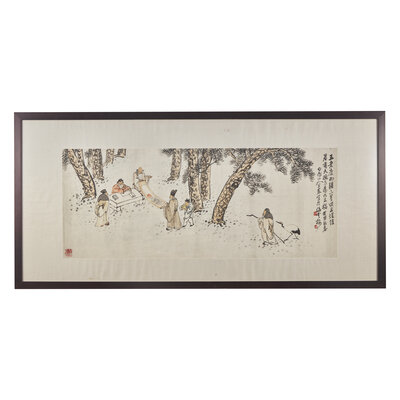 ink and color on paper, framed handscroll