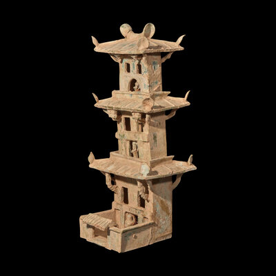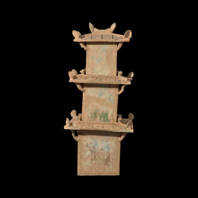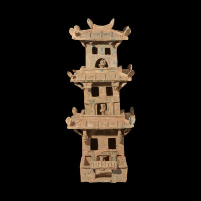 A Large Chinese Green Glazed Pottery Model of a Tower, Han Dynasty