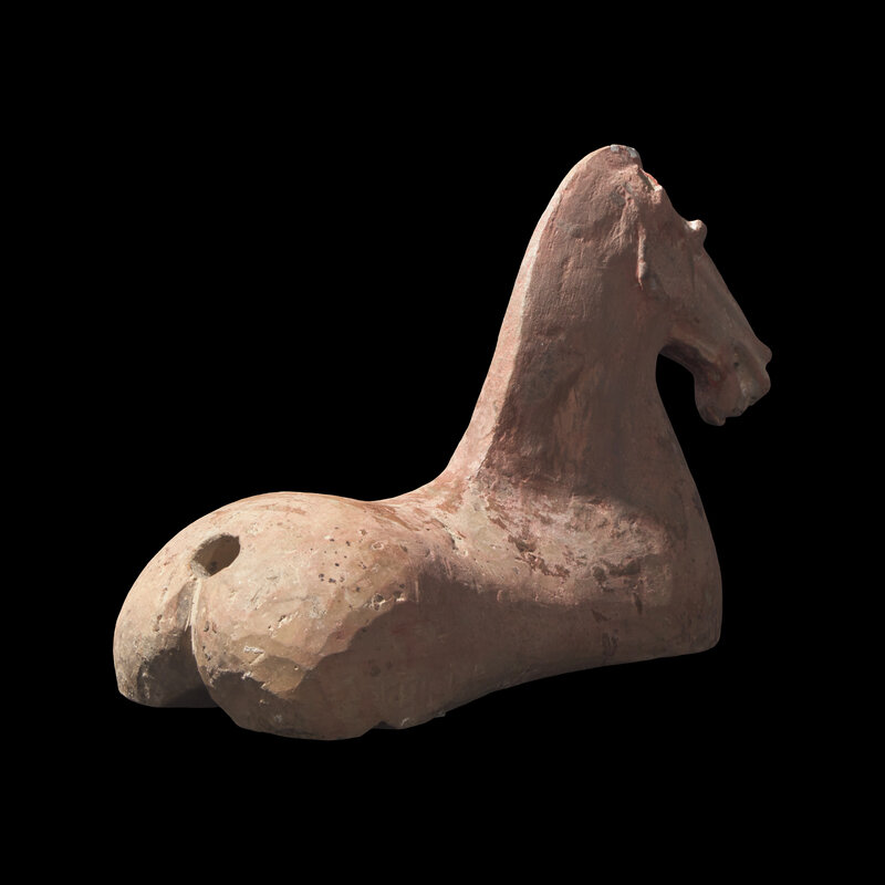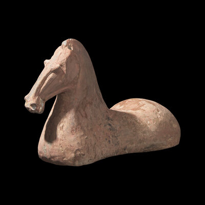 A Chinese Grey Pottery Head and Body of a Horse, Probably Han Dynasty