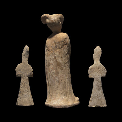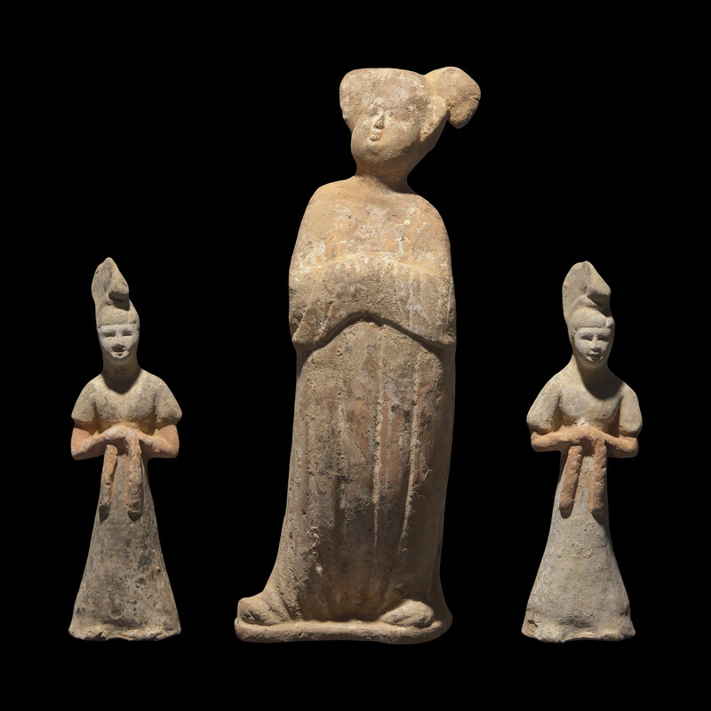 Three Chinese Pottery Figures of Court Ladies, Possibly Tang Dynasty