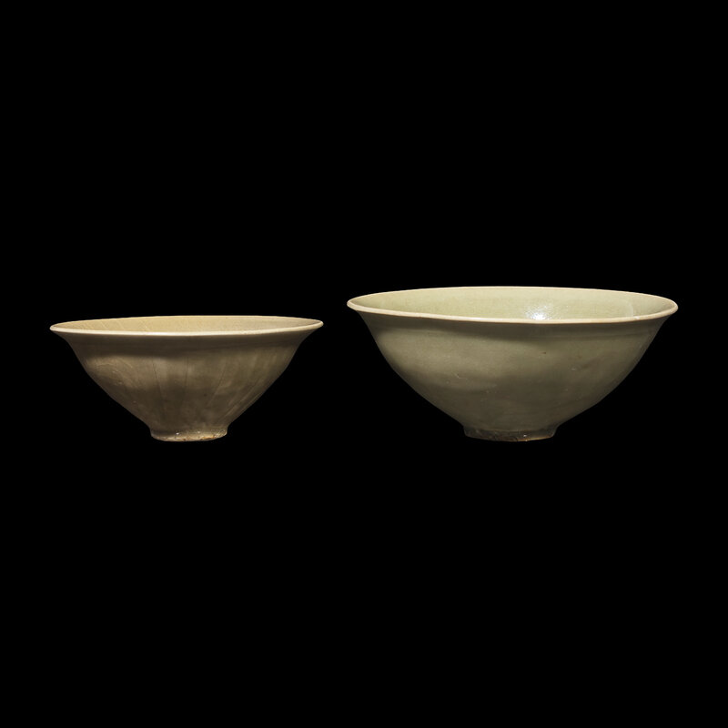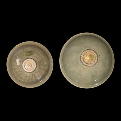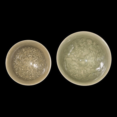 Two Chinese Molded Yaozhou Celadon Bowls, Possibly Northern Song Dynasty