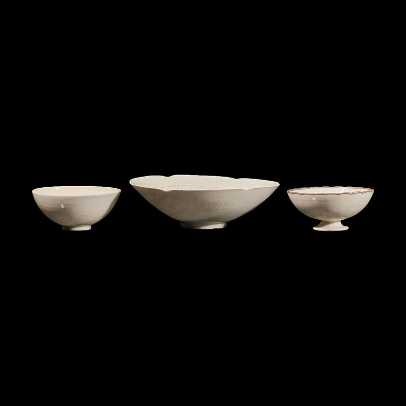 Two Chinese Ding Style Bowls and a Qingbai Glazed Bowl, Song Dynasty or Later