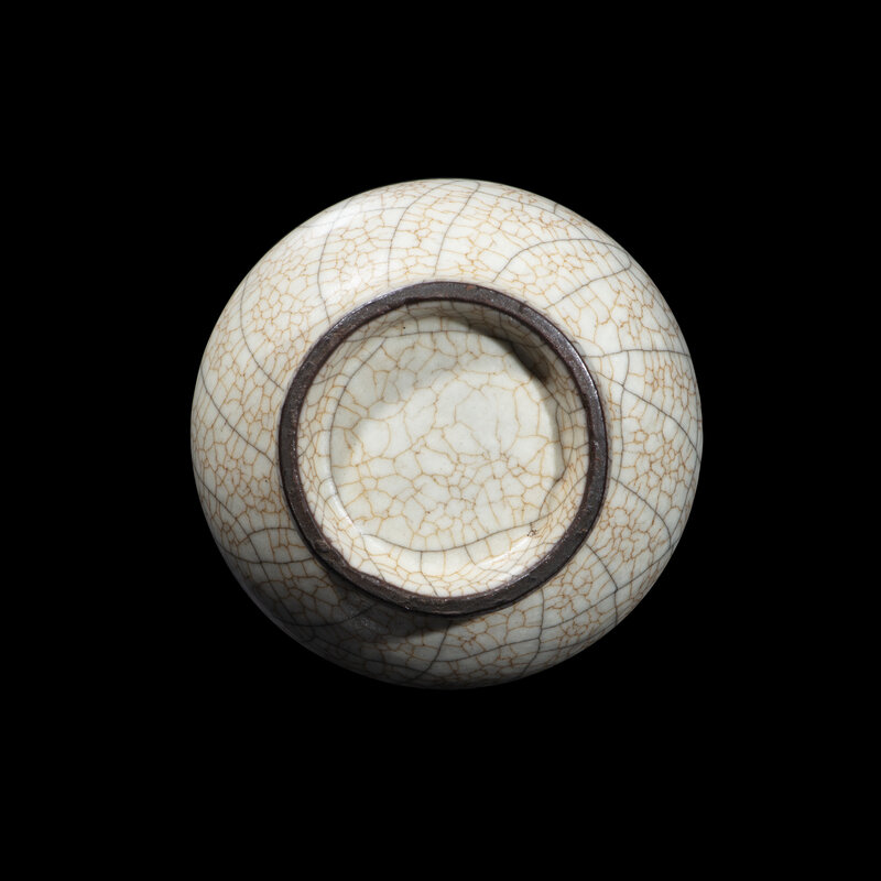 The thick grey-white glaze with fine golden and long dark crackles.