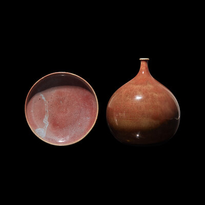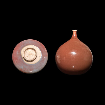 A Chinese Teardrop-Form Porcelain Vase and a Red Glazed Dish, Possibly Jin Dynasty and Later