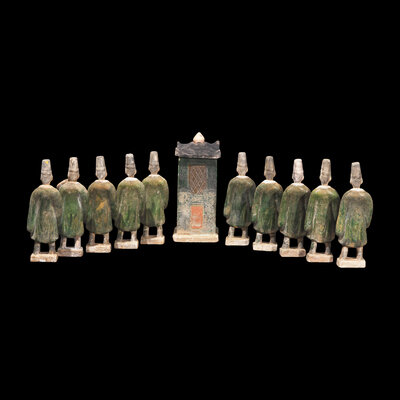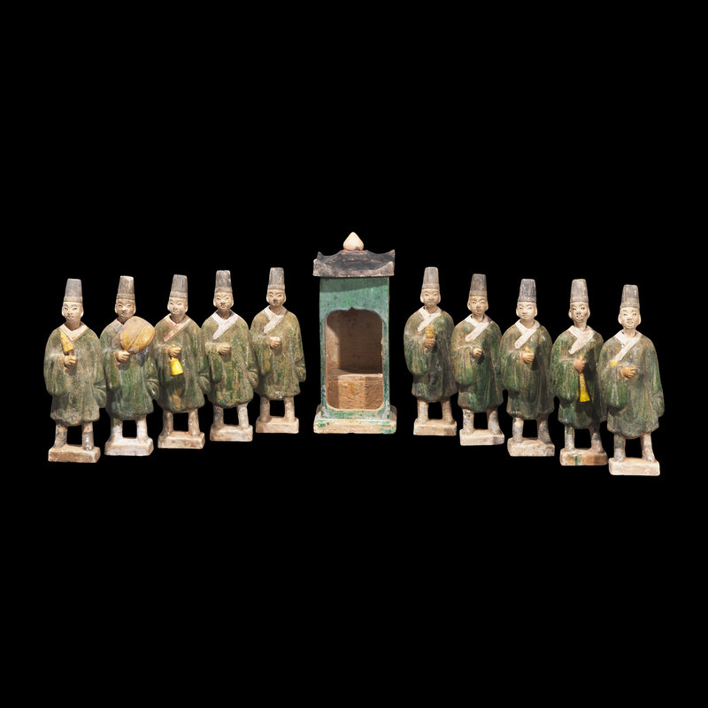 A Chinese Green Glazed Pottery Funerary Processional Group, Ming Dynasty