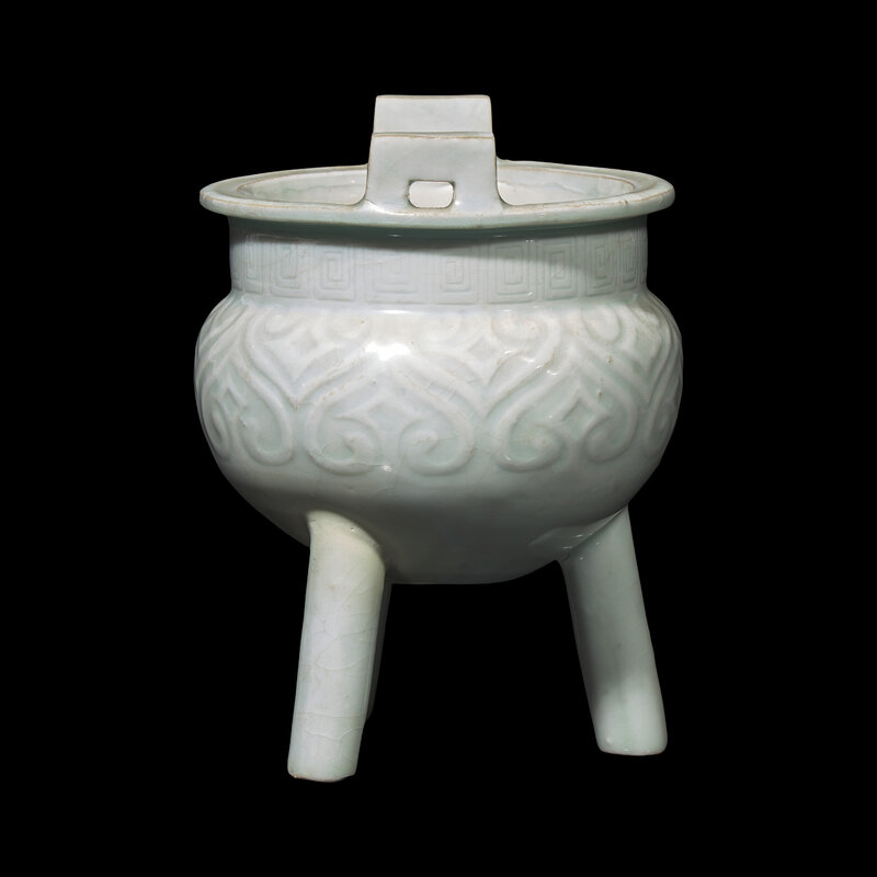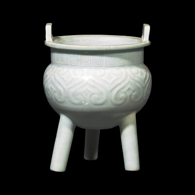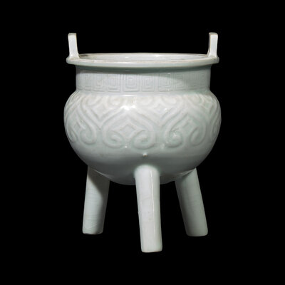 A Chinese Qingbai Style Molded Tripod Censor, Yuan Dynasty or Later