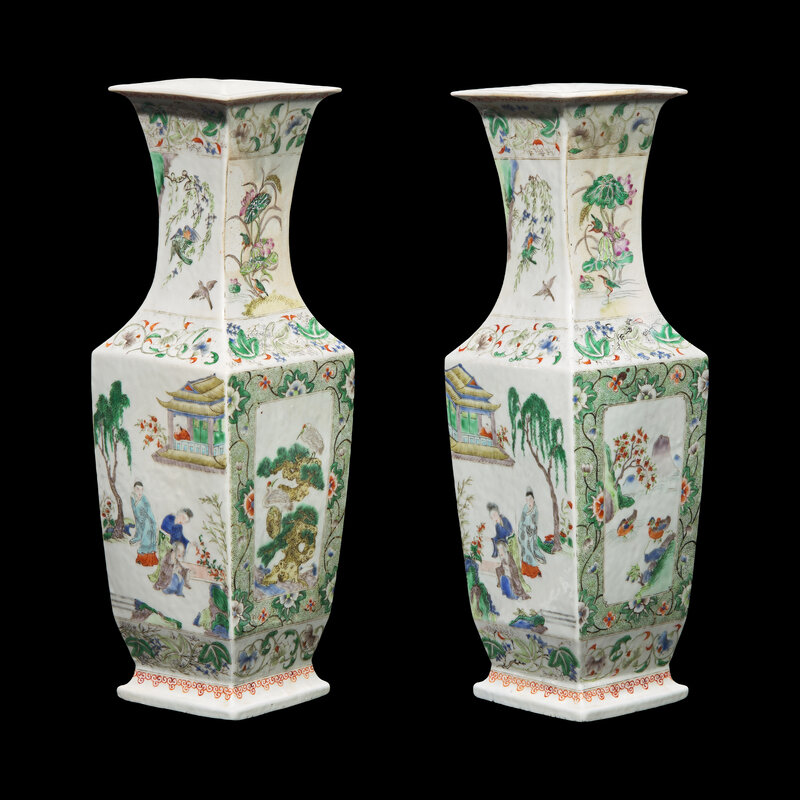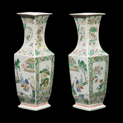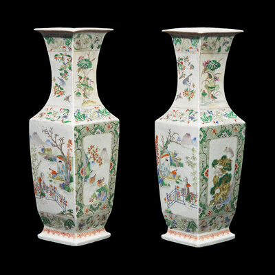 A Pair of Chinese Famille Rose Vases, Late Qing to Republic Period