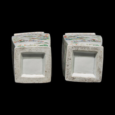 Of baluster form, square section, body decorated with mirrored figures in a landscape; alternative panels with cranes or ducks in a landscape.