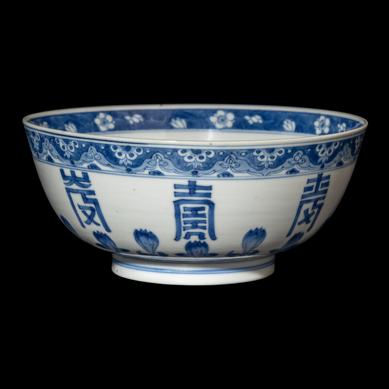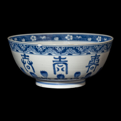 A Chinese Blue and White Porcelain 'Longevity' Bowl, Kangxi Period