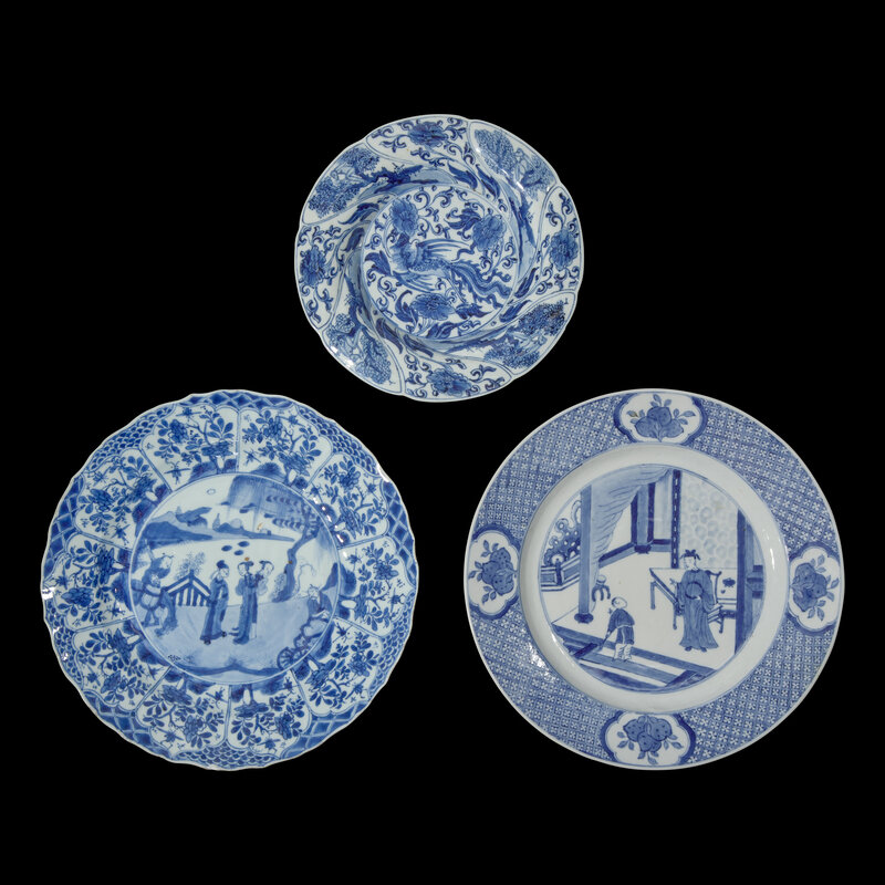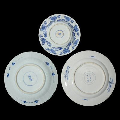 Three Chinese Export Blue and White Plates, Kangxi Period