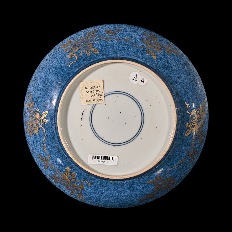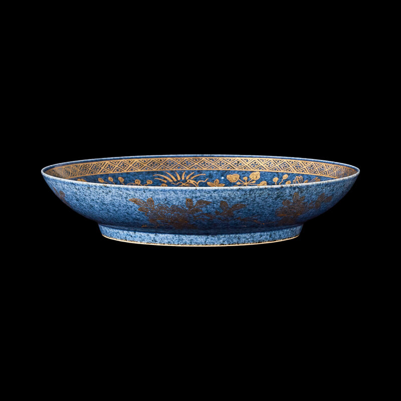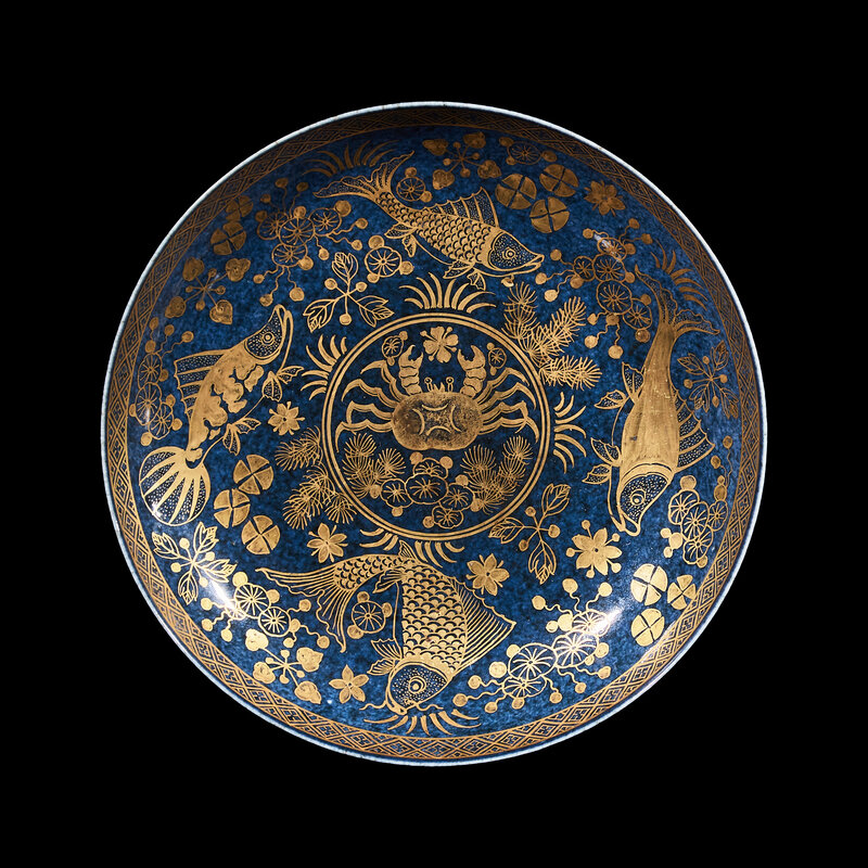 A Gilt Decorated Powder Blue Ground 'Fishes' Dish, 18th Century