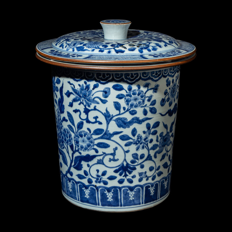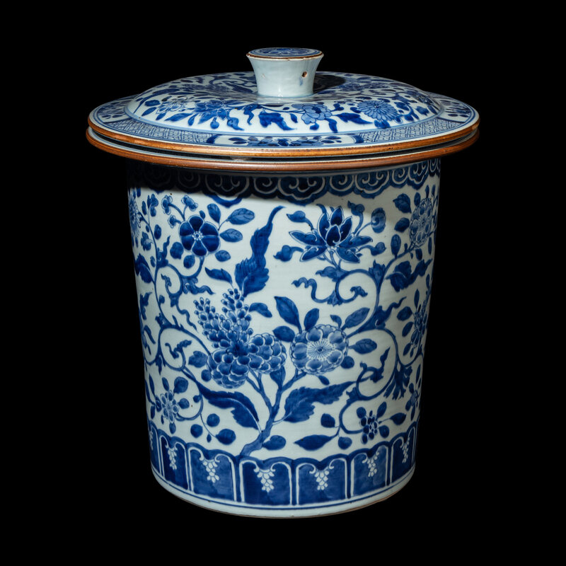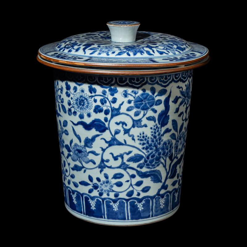 A Chinese Blue and White 'Floral' Porcelain Ice Bucket, Kangxi Period