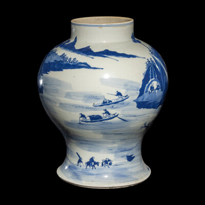 清中期 青花山水圖將軍罐
