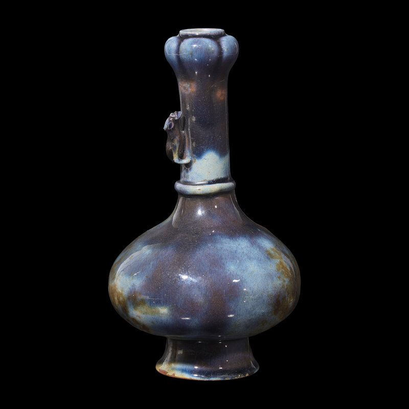 An Unusual Chinese Mottled Blue Glazed Archaistic Garlic Mouth Vase, Mid 18th Century or Later