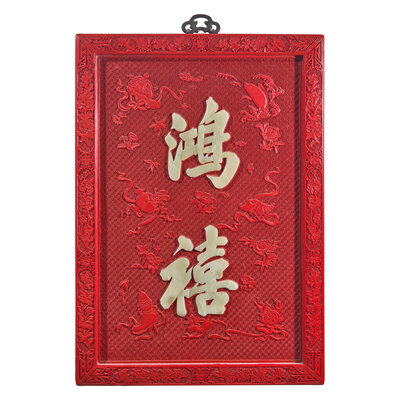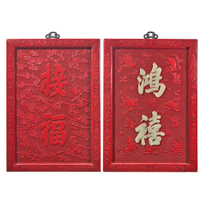 近代 雕漆嵌玉鴻禧接福挂屏一對
