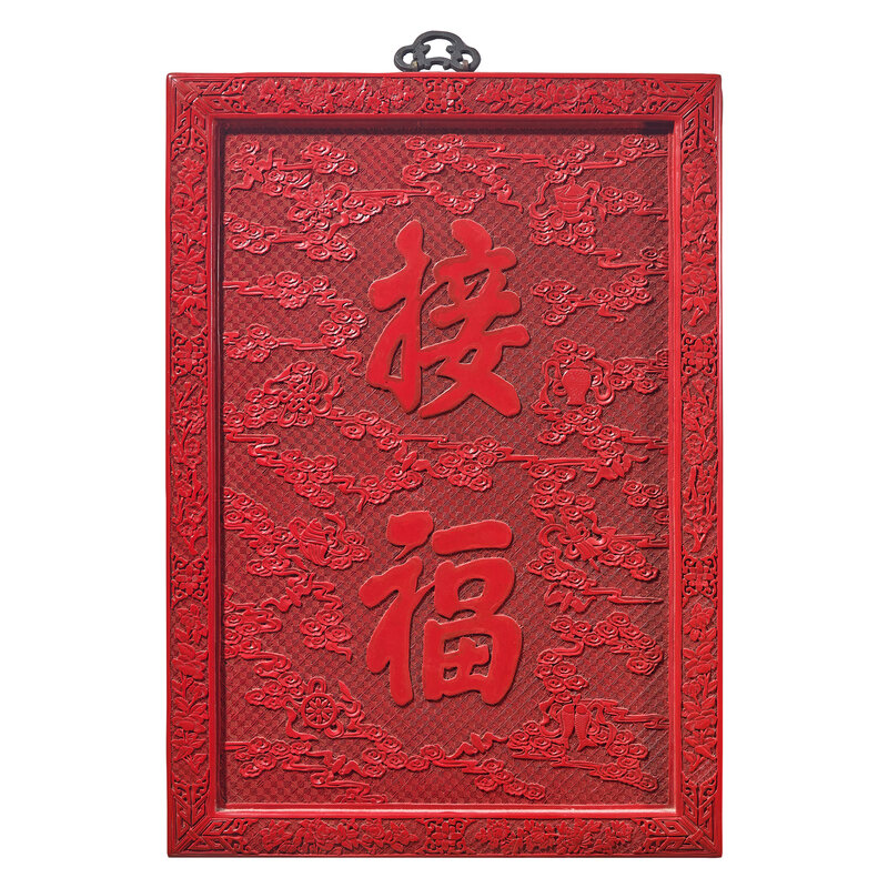 Two Chinese Carved Cinnabar Lacquered Plaques, 20th Century
