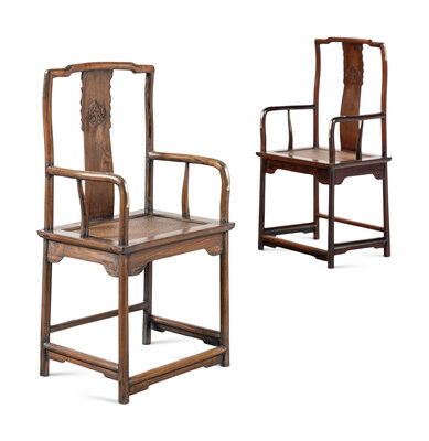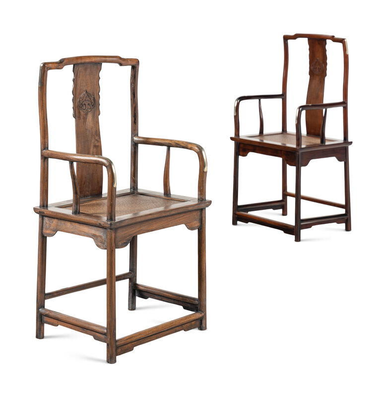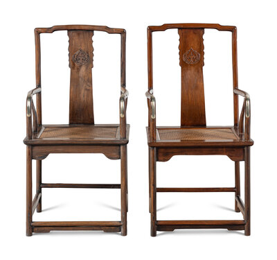A Pair of Chinese Huanghuali and Hardwood Official's Hat Chairs, Nanguanmaoyi, 20th Century