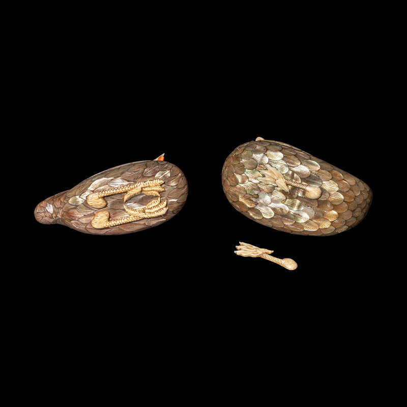 Two Chinese Mother of Pearl Bird-Form Boxes and Covers, Late 19th/Early 20th Century