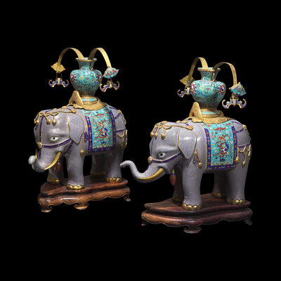 A Pair of Large Chinese Cloisonne Enamel Elephants, 20th Century