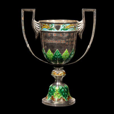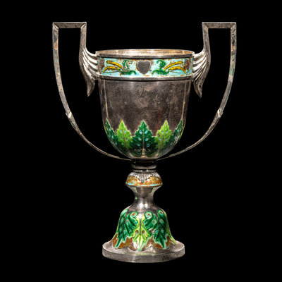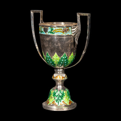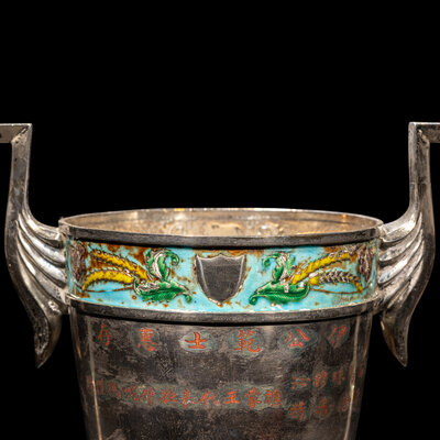 A Chinese Export Enameled Silver Trophy Cup, 20th Century