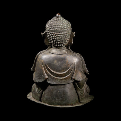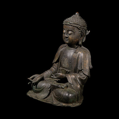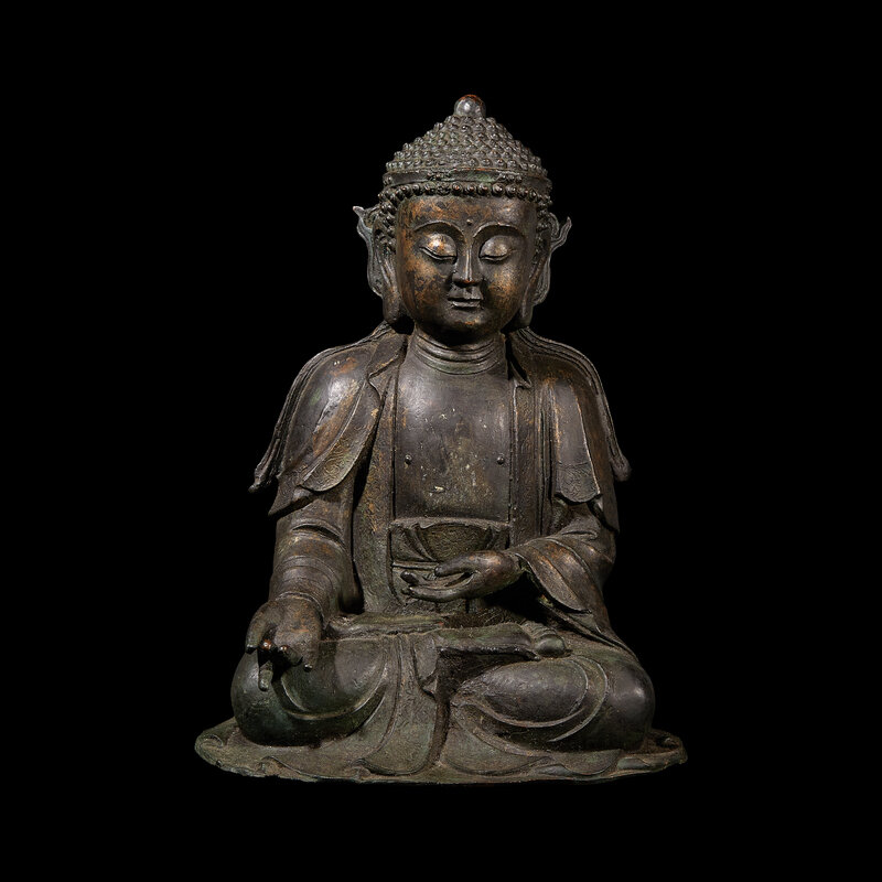 A Chinese Patinated Copper Alloy Seated Buddha