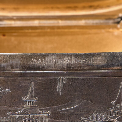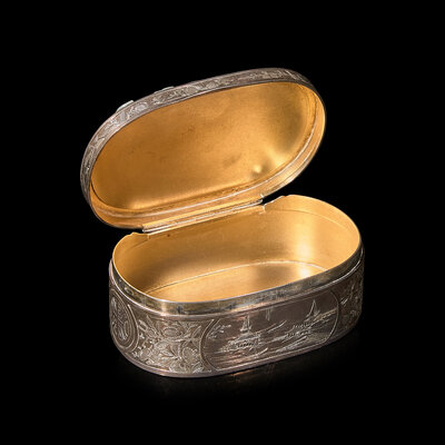 清中期 銀嵌玉牌香盒及蒼龍教子帶鈎