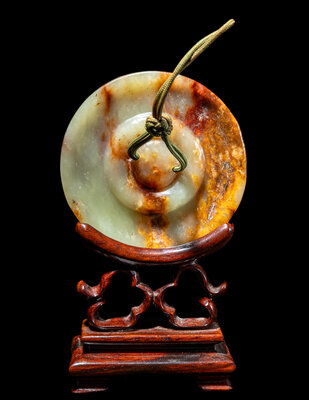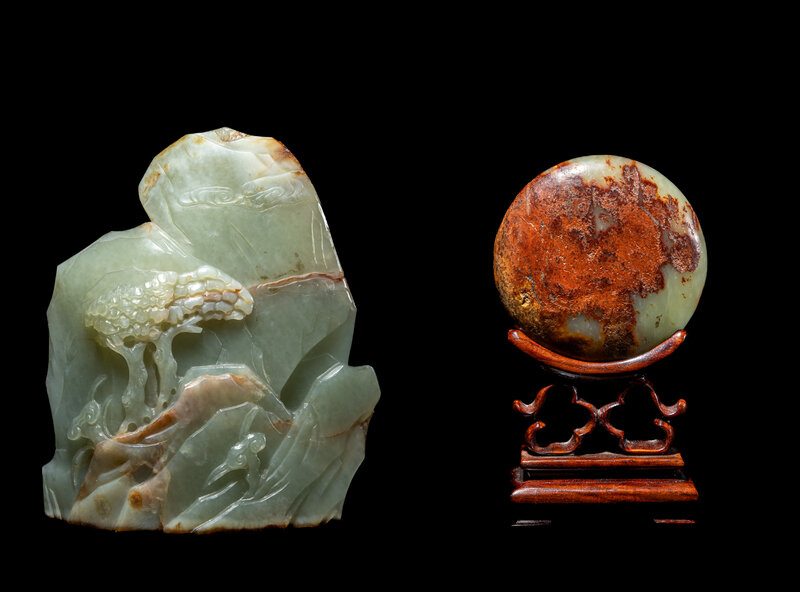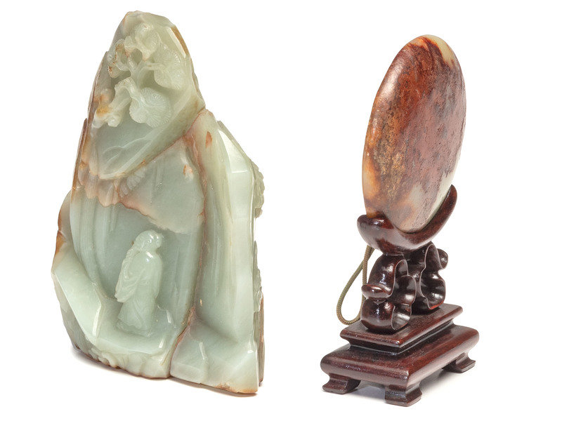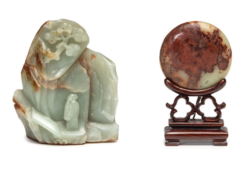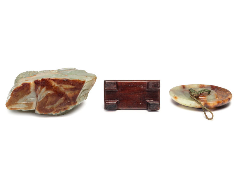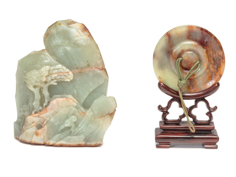 Two Chinese Carved Celadon and Russet Jade Articles, Ming-Qing Dynasty