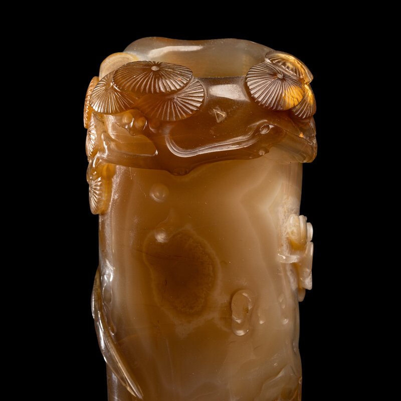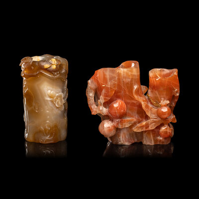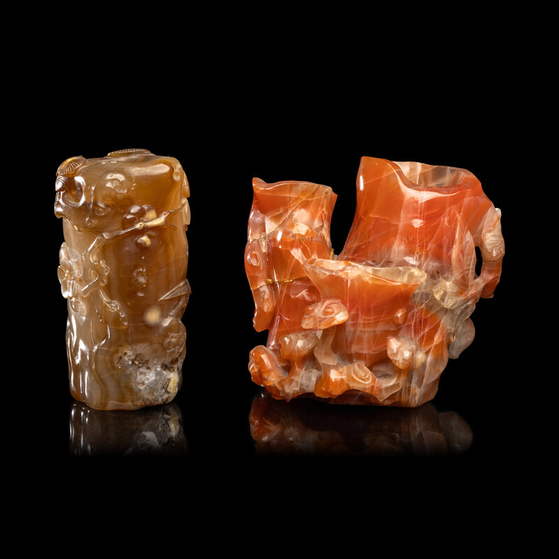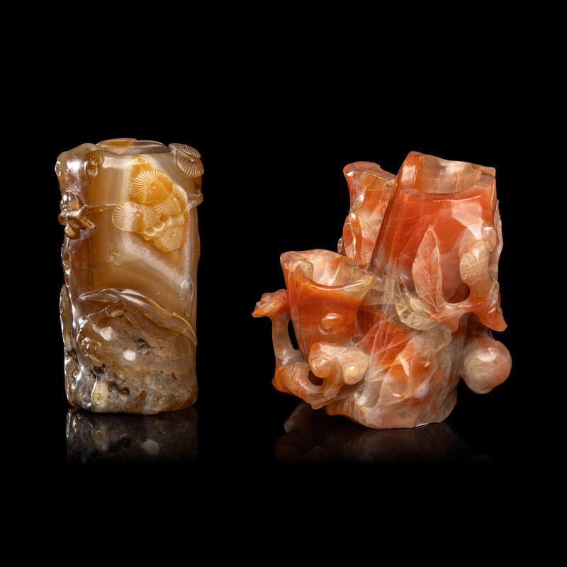 Two Chinese Carved Agate Brushpots, Bitong