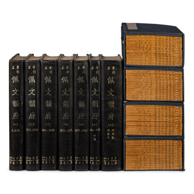 (1) KANGXI EMPEROR. Yu zhi li dai shi yu. 48 volumes, 120 juan, yin yin lu edition, published early 20th century.