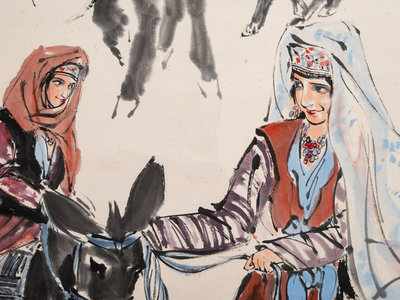 signed, inscribed and dated year yihai (1997), with three artist seals, Huangzhou zhi yin, yu shi ju, Li xian Liangshi.