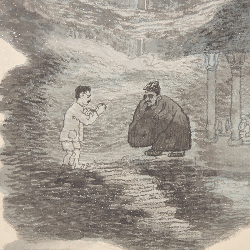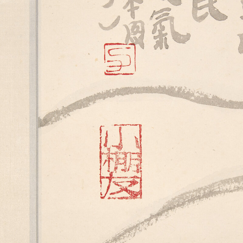 with lengthy inscriptions, dated to the 2557th year of Confucious' birth, possibly equivalent to 2006, but painted before 2003, with five seals.
