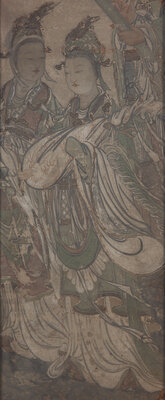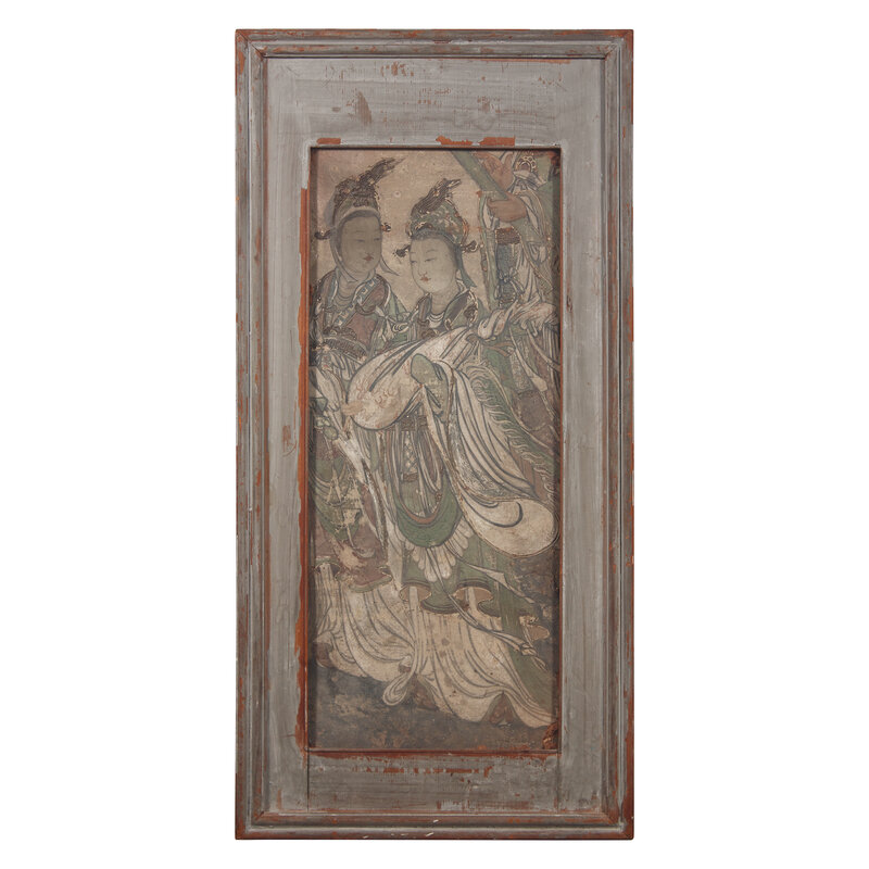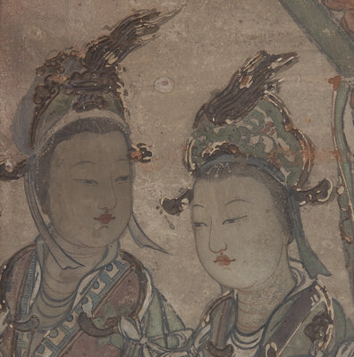 A Chinese Fresco Fragment Depicting Celestial Maidens, Ming Dynasty