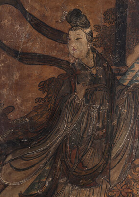 元/明 瀝粉貼金彩繪仕女圖壁畫