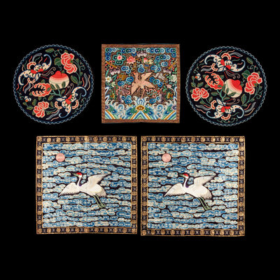 Five Chinese Embroidered Rank Badges and Roundels, 20th Century