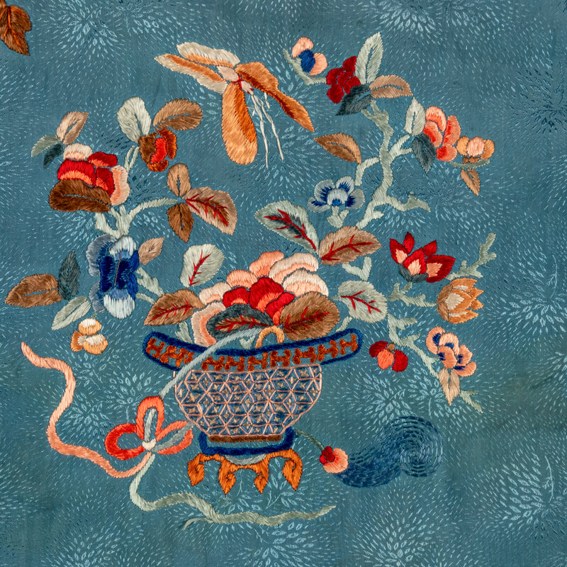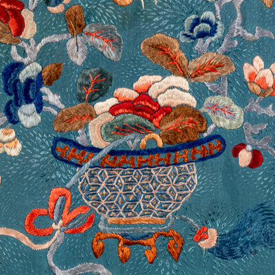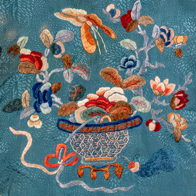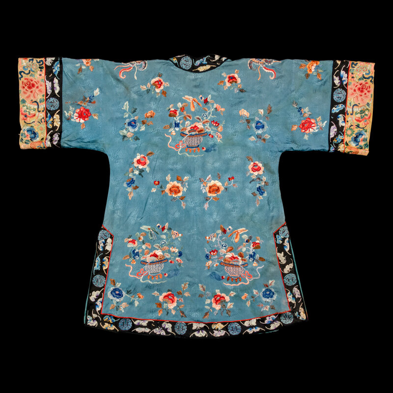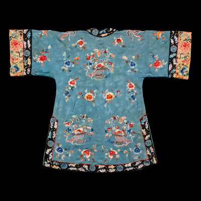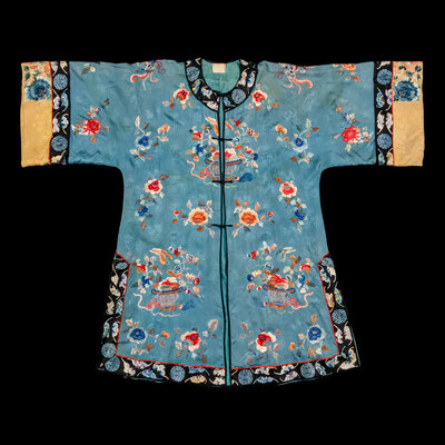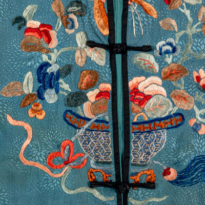 A Chinese Celeste Blue Ground Embroidered Silk Lady's Jacket