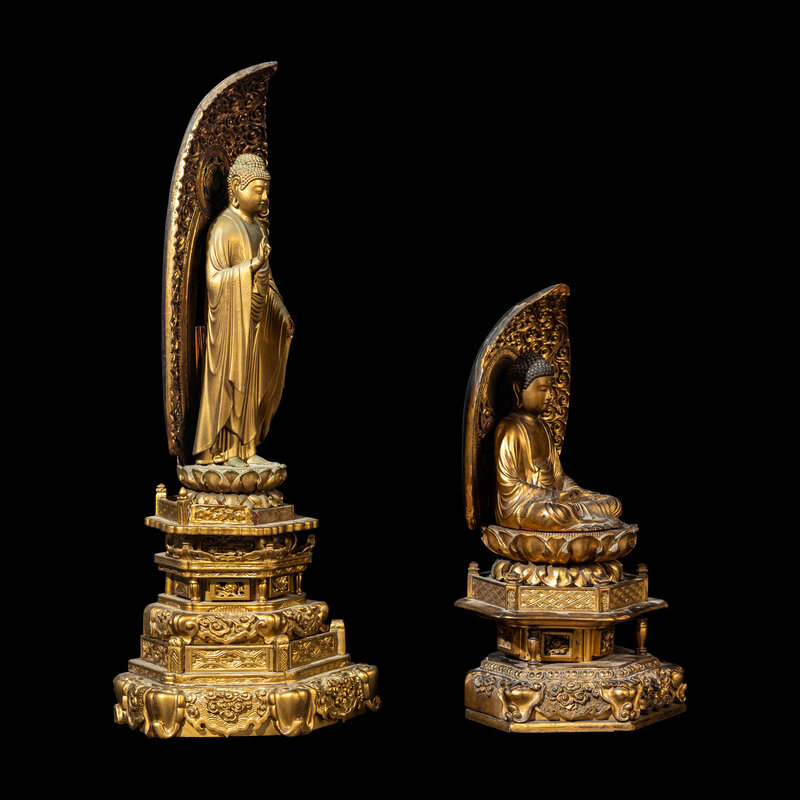 Two Japanese Gilt Wood Figures of Amida Buddha, Edo-Meiji Period