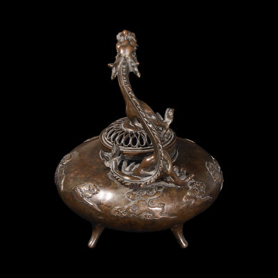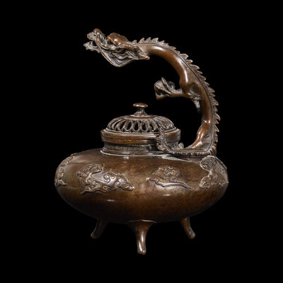 A Japanese Patinated Bronze 'Dragon' Censer, 19th/20th Century