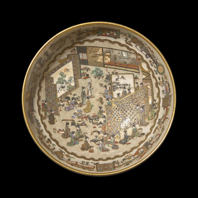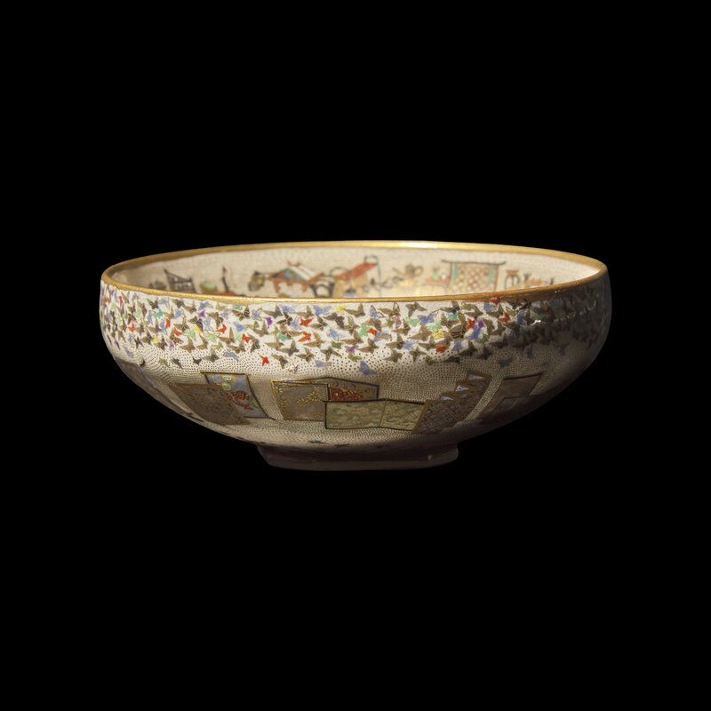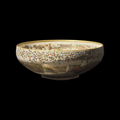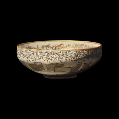 A Fine Japanese Satsuma Type Enameled Pottery Bowl, Meiji Period
