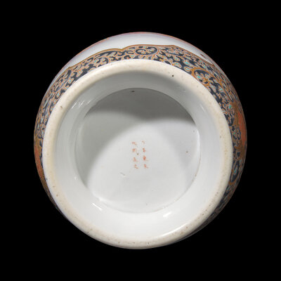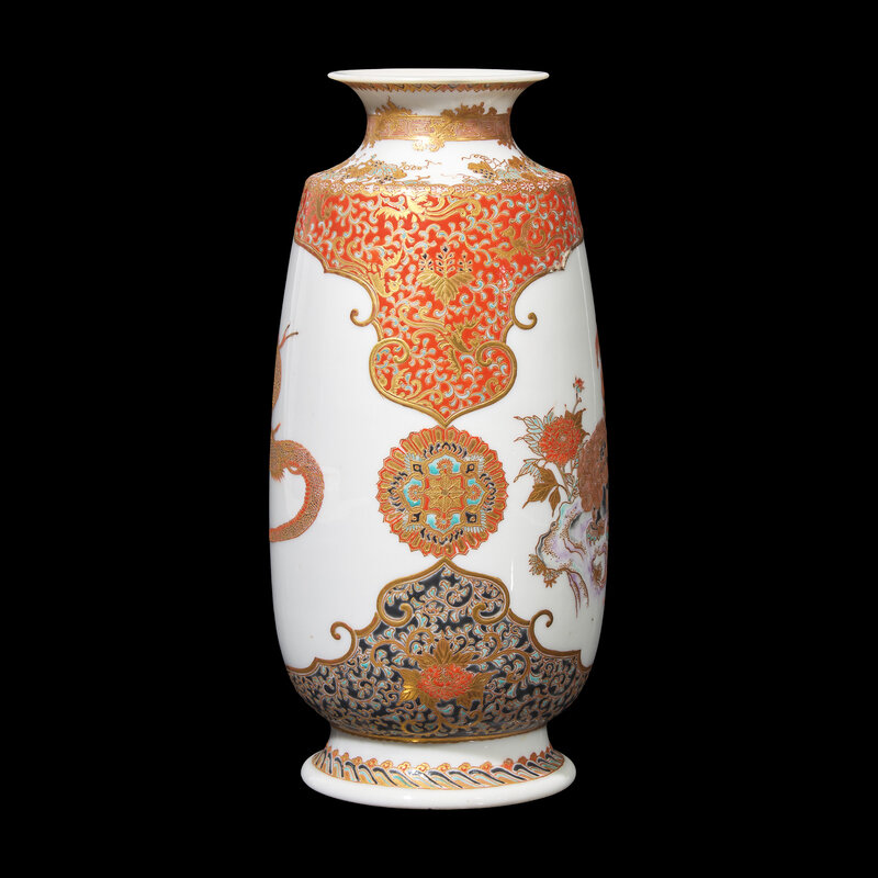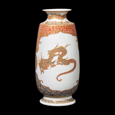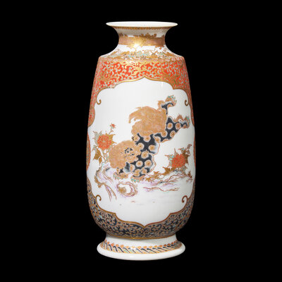 A Japanese Porcelain 'Dragon and Shishi' Vase, Signed, Meiji/Taisho Period