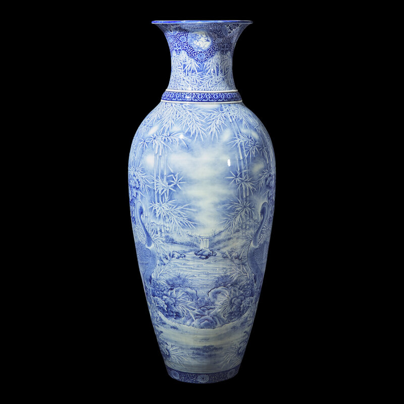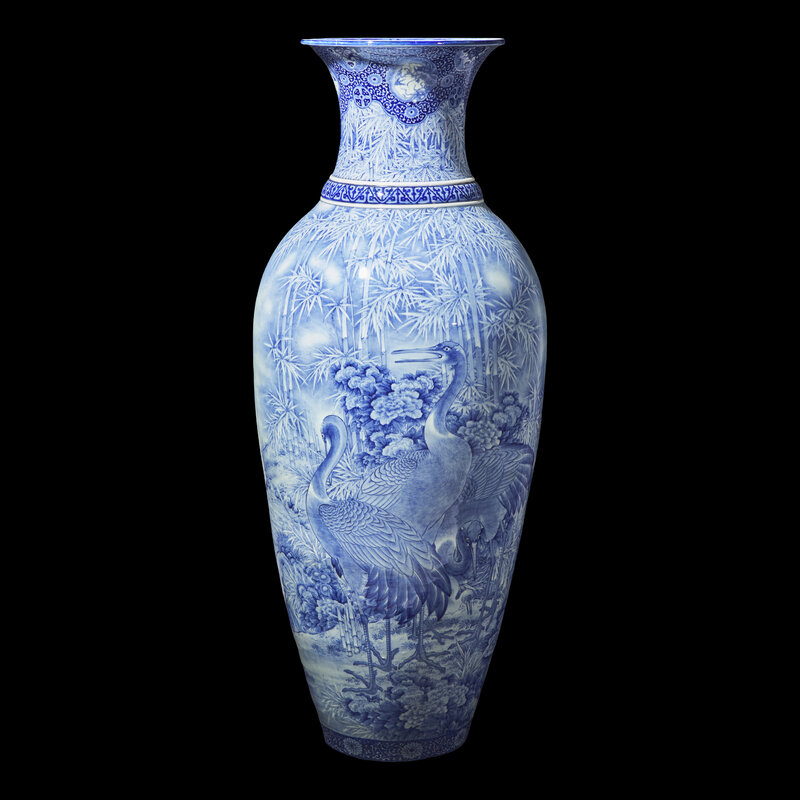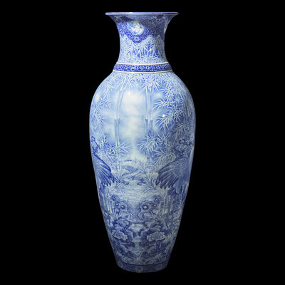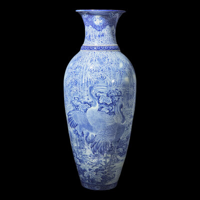 A Massive Japanese Blue and White Porcelain Vase, Meiji Period