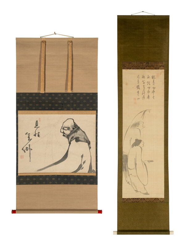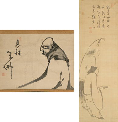 ink on paper, two hanging scrolls.