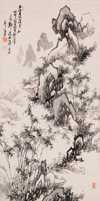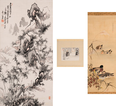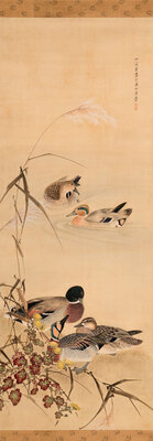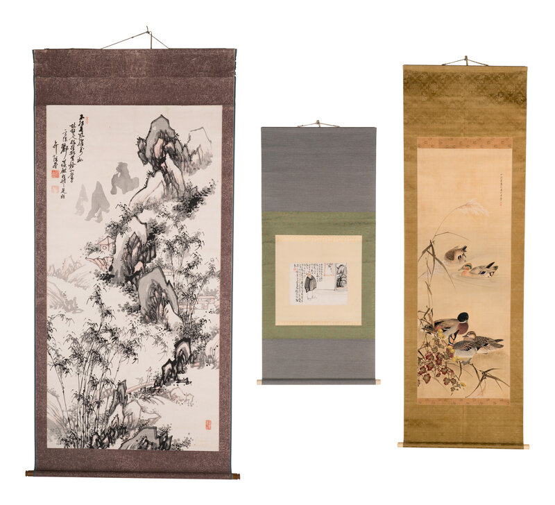 ink and color on paper, hanging scroll
