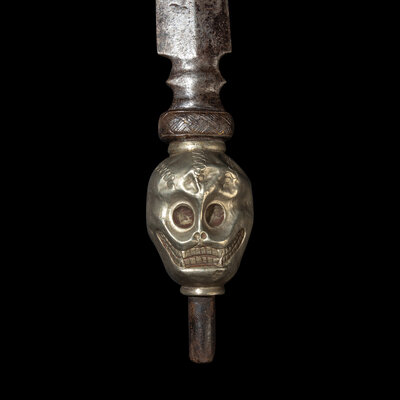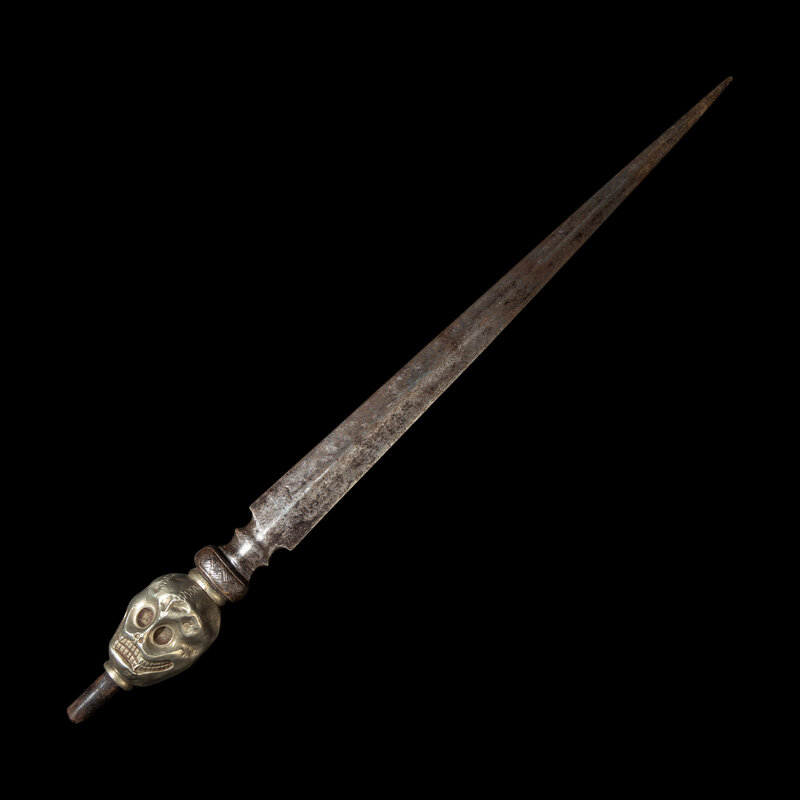 A Tibetan Silver and Bronze Ritual Spear Head with Skull, 19th Century