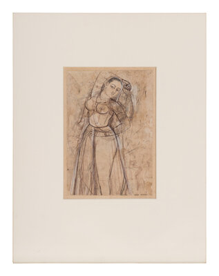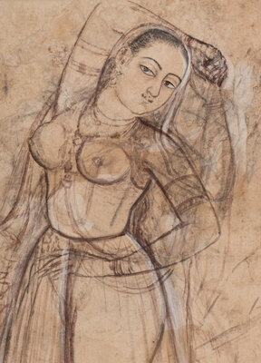 An Indian Drawing of a Court Lady, India, Rajasthan, 18th-19th Century